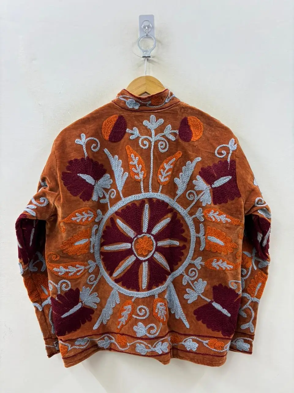 Modern fashion velvet Suzani jacket with unique embroidered style.