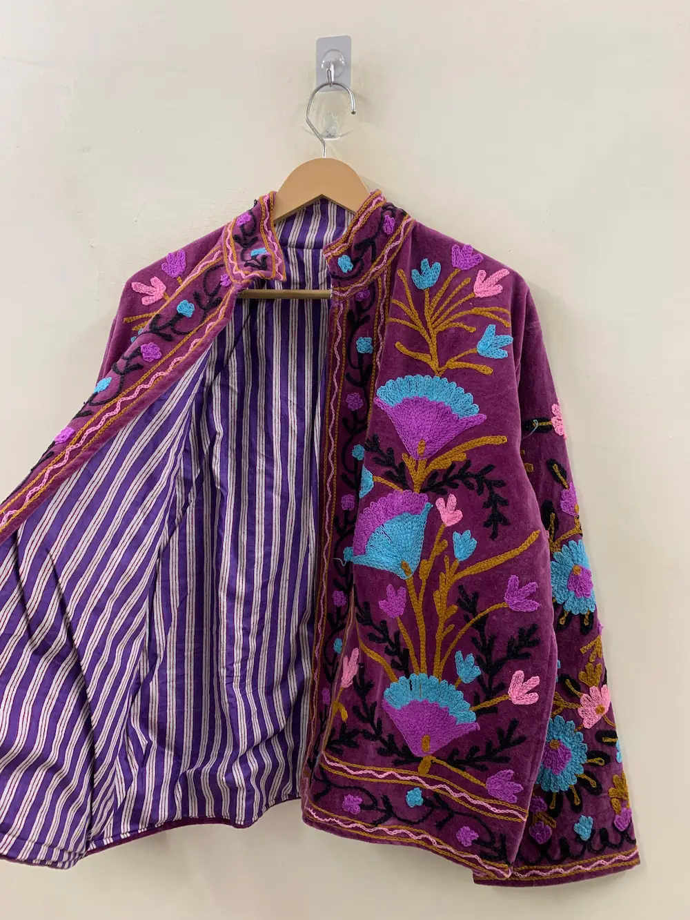 Elevate your wardrobe with our stunning Velvet Suzani Jacket, a perfect fusion of traditional craftsmanship and modern fashion. Designed for women who love unique statement pieces, this jacket features intricate Suzani embroidery inspired by rich cultural heritage.